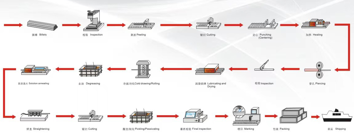 擁有AOD精煉爐;650軋機,Ф50、Ф90、Ф133型穿孔機組,10T-250T冷拔機組生產(chǎn)線18條、LG120H型1條LG80型1條LG60H型8條LG50型2條及LD60型1條LD30型1條冷軋生產(chǎn)線、擁有力學(xué)試驗、超聲波探傷、渦流探傷、水壓試驗、德國進口光譜儀等檢測設(shè)備,以及配套的理化分析等設(shè)施